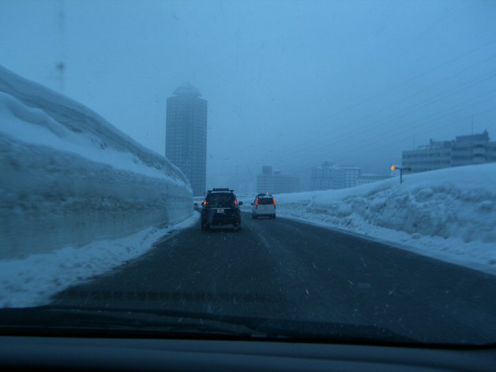そしてもう一つ驚きが、越後湯沢の道路はどこもかしこも雪の壁壁壁!