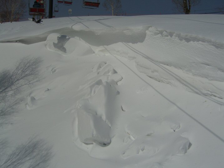 記憶が定かではないのですが、当日尾根の緩斜面から下部に真っ直ぐ下りる急斜面にフカ